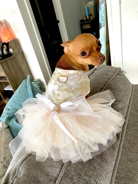 This divine🥰I only recommend one size more, my dog is size M but this is very fair, a L would be much more comfortable, in terms of quality and design it is super cute and flirtatious