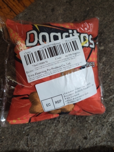 These fun dog toys are shaped like crisps and chips packets with a plush