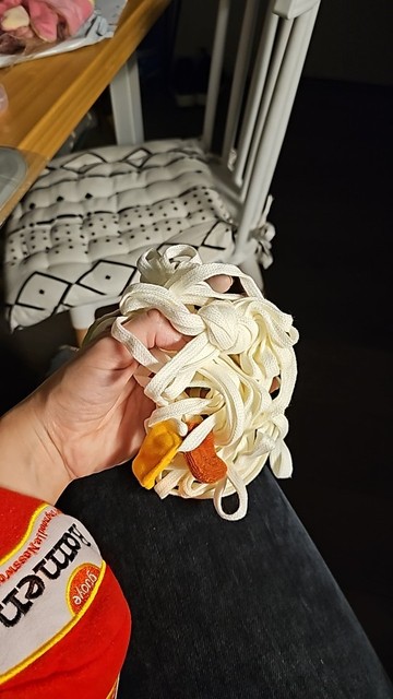 Is smaller than I thought. But it’s the same as the image. “Noodles” are like sneaker laces. Very nice