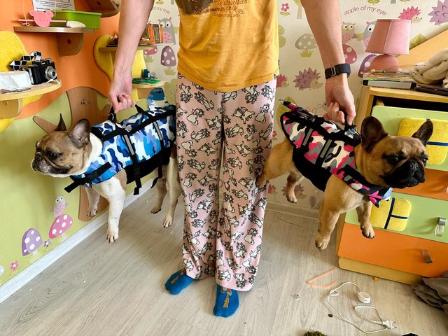 Very cool vests! Size S for 7 kg bulldog fit perfectly. Size L for a 13 kg bulldog is a little big, but overall it fits. It’s cool to carry dogs by the handle! The package arrived in Ukraine very quickly, also by new post.